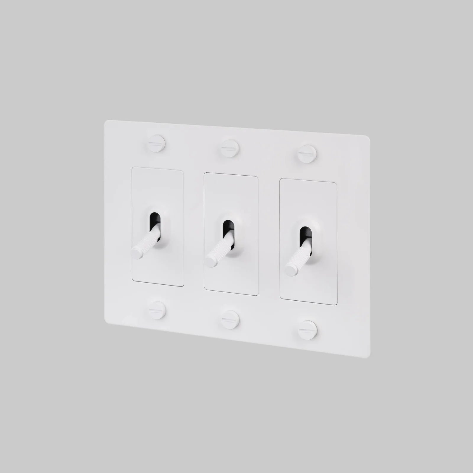 • Configuration: 3-gang plate with three individual on/off toggle modules