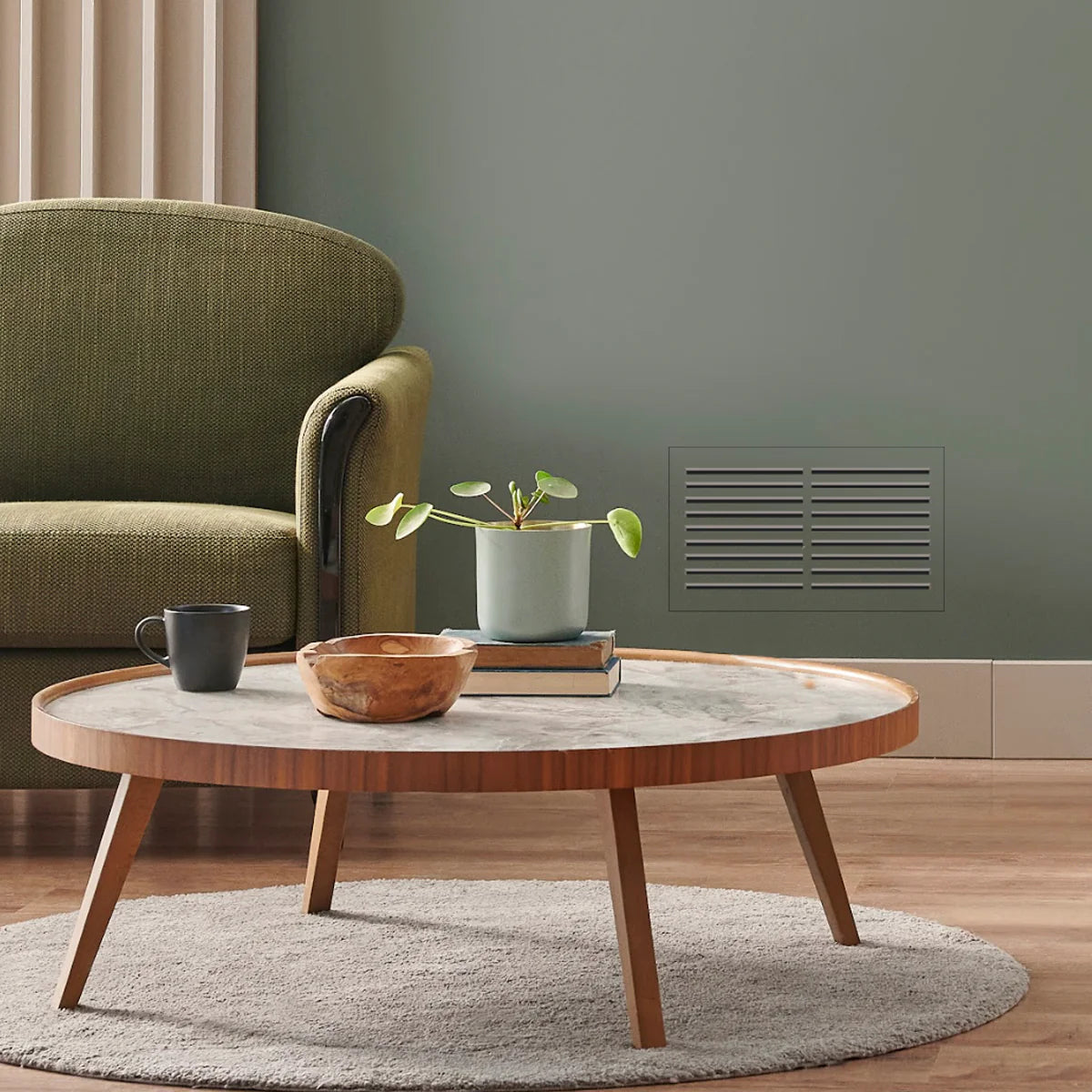 A return that disappears so the room reads as architecture, not hardware. This removable, mud-in air return finishes perfectly flush to the wall and presents as two calm rows of narrow horizontal slots—no plastic bulk, no visible screws. The paint-ready face blends to your exact color and lifts away for service or behind-cover filtration, delivering quiet, contemporary lines without compromising airflow or access.