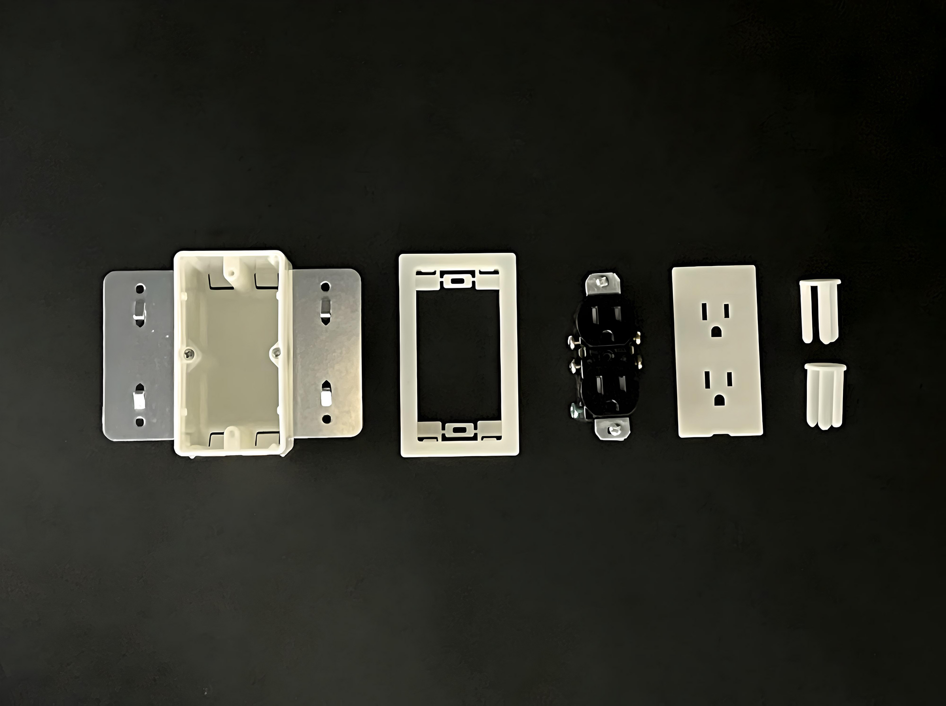 This kit follows a familiar rough-in workflow adapted for hard surfaces. Fasten the adjustable surface box to framing, route conductors through the integrated clamp, and set depth to the final material thickness. After the panel is installed, the trim ring and paintable fascia complete a refined, low-profile presentation. The system is compatible with standard U.S. single-gang outlets—including duplex, GFCI, and USB combinations—so you can select the device that matches circuit requirements and code. Use on interior walls only; for drywall projects seeking a fully flush, mud-in look, choose the brand’s Flush Mount (hidden) series. Professional installation is recommended to ensure code-compliant wiring, correct box depth, and even reveals. Electronics/devices are not included—this kit supplies the surface-mount box, trim ring, fascia, and mounting hardware.